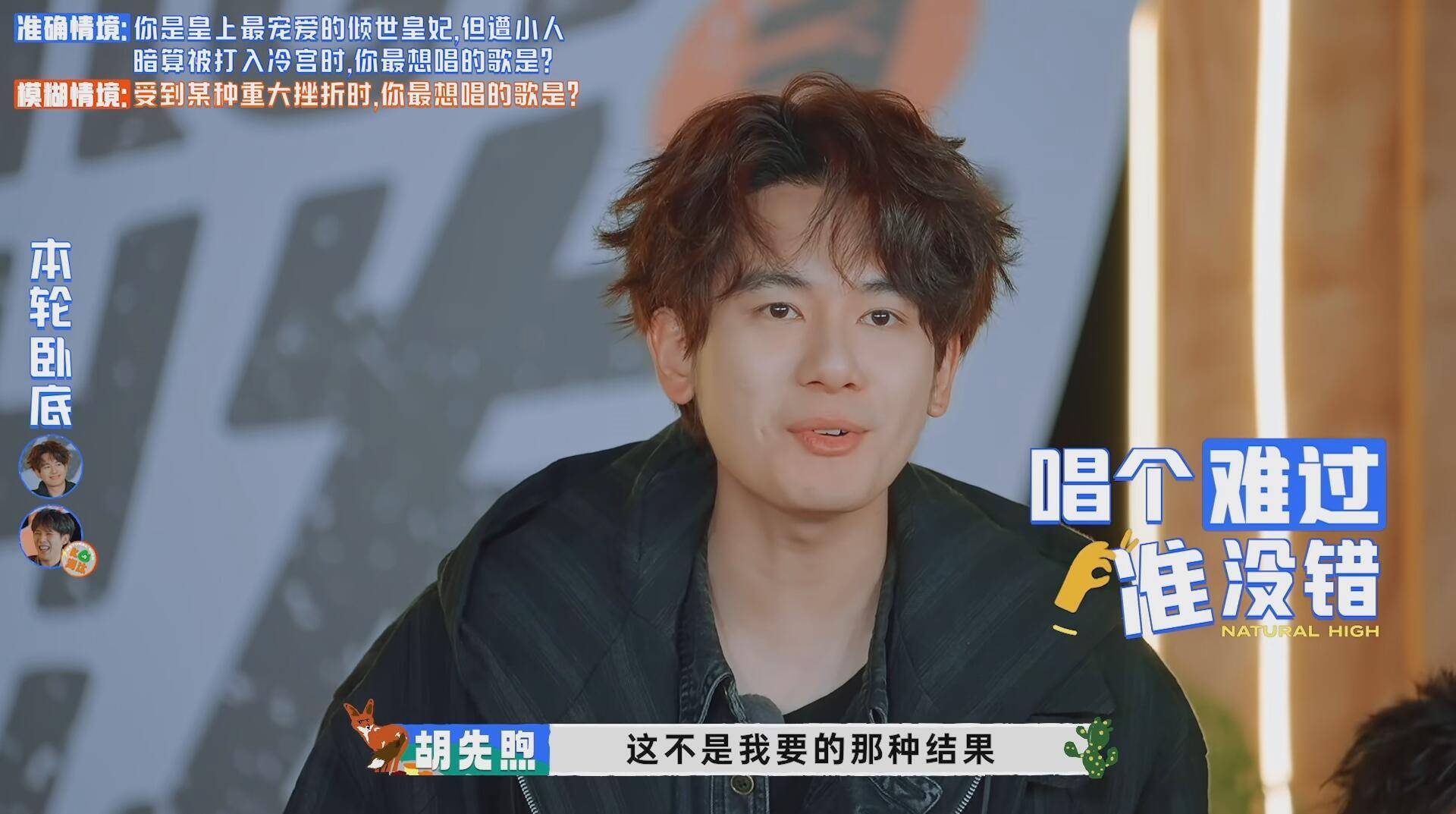 听了前面的歌曲之后,胡先煦直接唱“好难过,这不是我要的那种结果”。